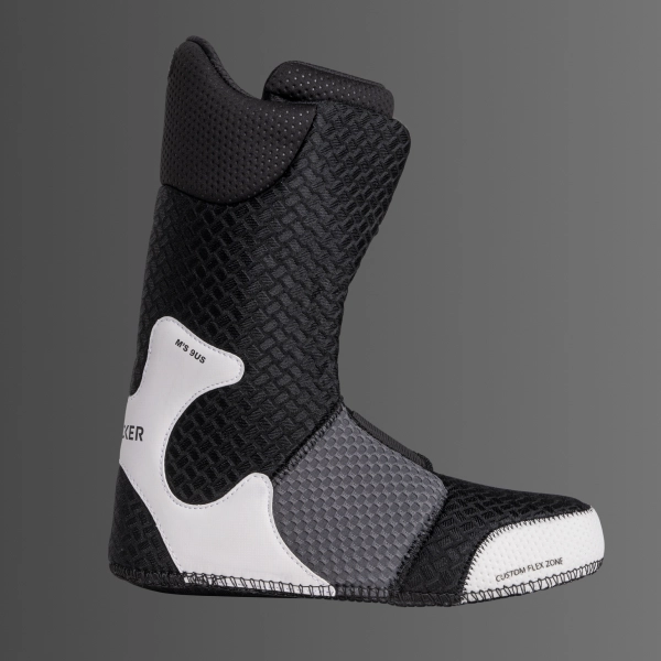The Silver liner can be heat molded for a custom fit and features a Custom Flex Zone at the toes, 8mm PE foam, and added PU support. A separate cuff connected to the shell ensures easy entry, while Velcro patches on the tongue secure the fit.
